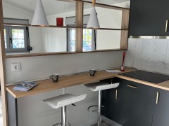• Barra en cocina y dos taburetes.