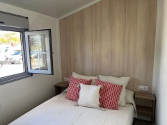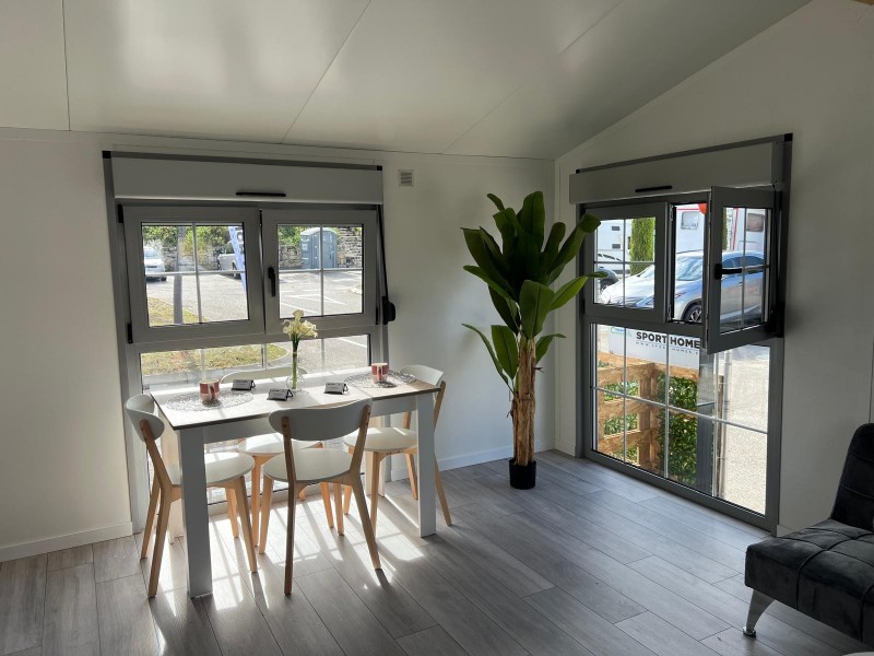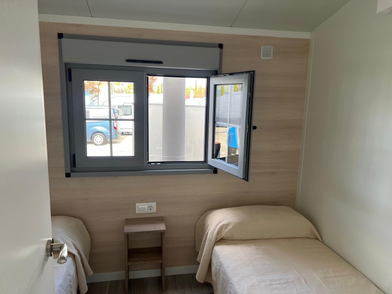 • Exterior de Panel 40mm, tablero hidrófugo 19mm y suelo tarima.