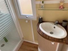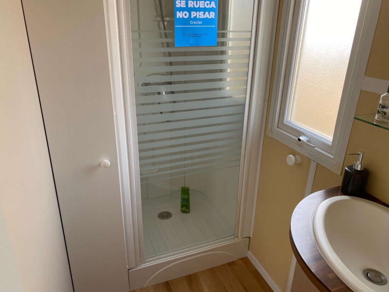 • Cabina de ducha y lavabo.