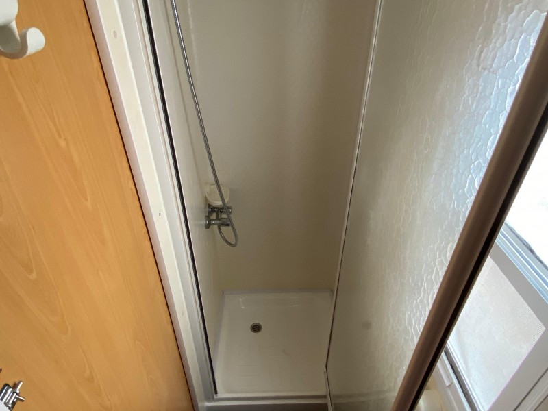 • Baño con cabina de ducha y lavabo.
